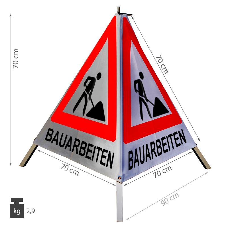 Faltsignal 70 cm retro-reflektierend für Baustellen bei Dunkelheit – Sichern Sie Ihre Baustelle mit dem Verkehrszeichen (VZ 123) ab.