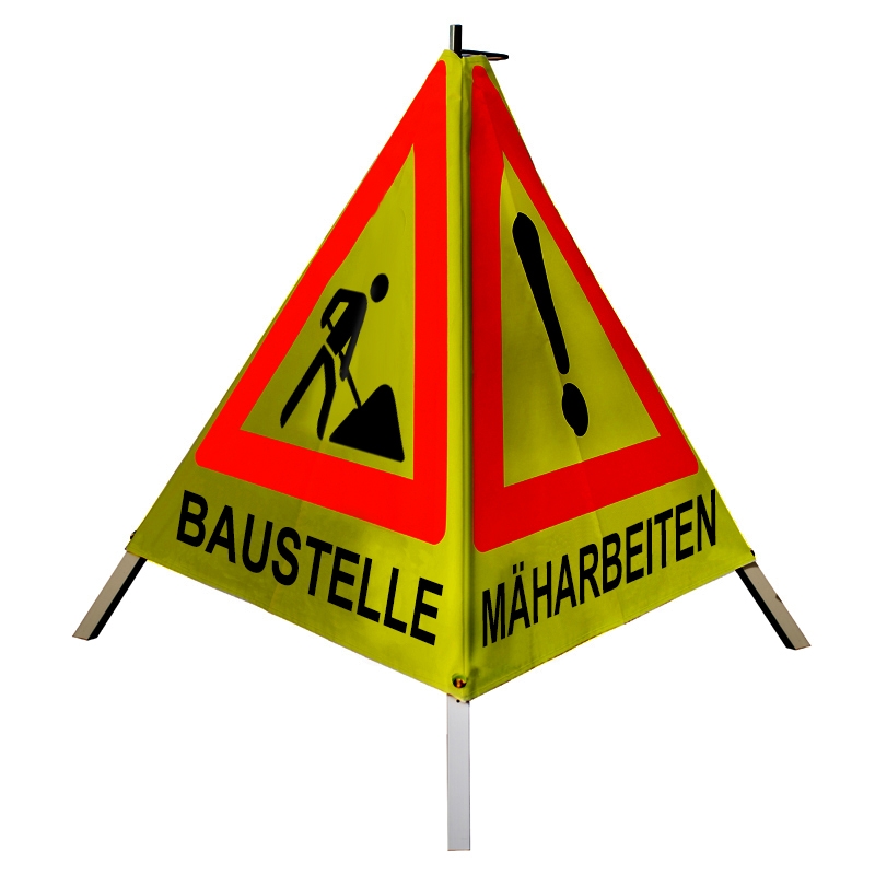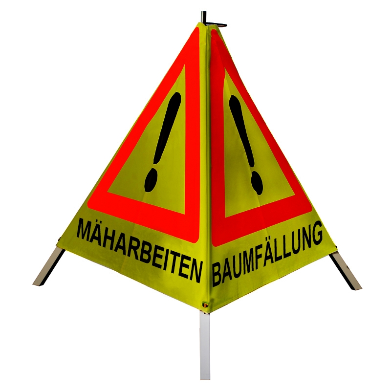 Warnpyramide/Faltsignal - BAUMFÄLLUNG (VZ101) / MÄHARBEITEN (VZ101) / BAUSTELLE(VZ123)