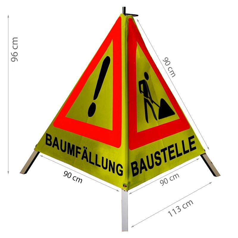 Warnpyramide/Faltsignal - BAUMFÄLLUNG (VZ101) / MÄHARBEITEN (VZ101) / BAUSTELLE(VZ123)