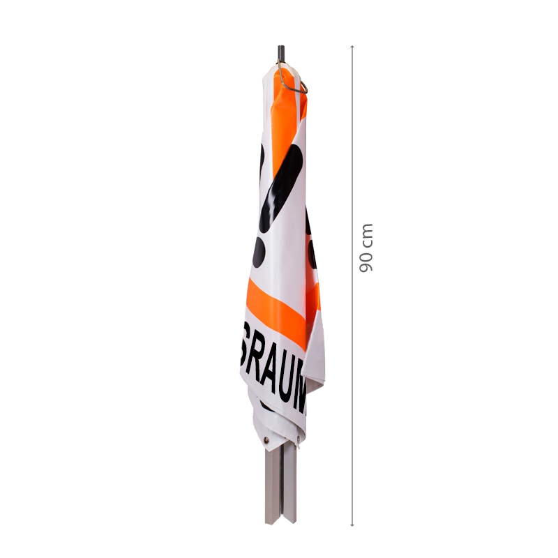 Das 70 cm Faltsignal in tagesleuchtend weiß hat eine Höhe von 76 cm und wiegt 2,9 kg. Durch das leuchtrote Warndreieck erzeugt es besondere Aufmerksamkeit bei Katastrophenschutz-Einsätzen.