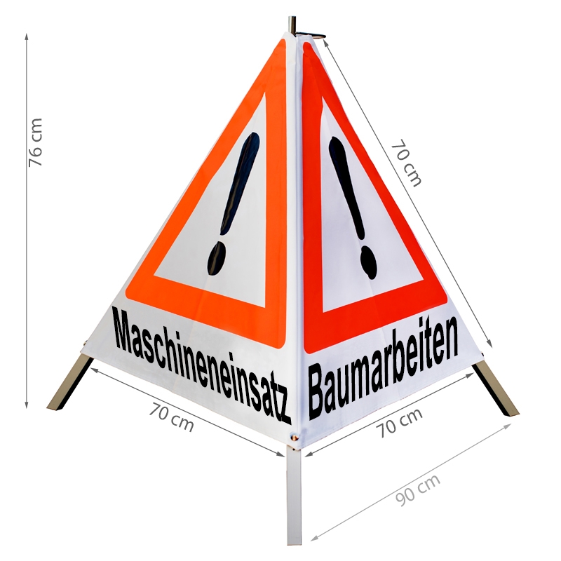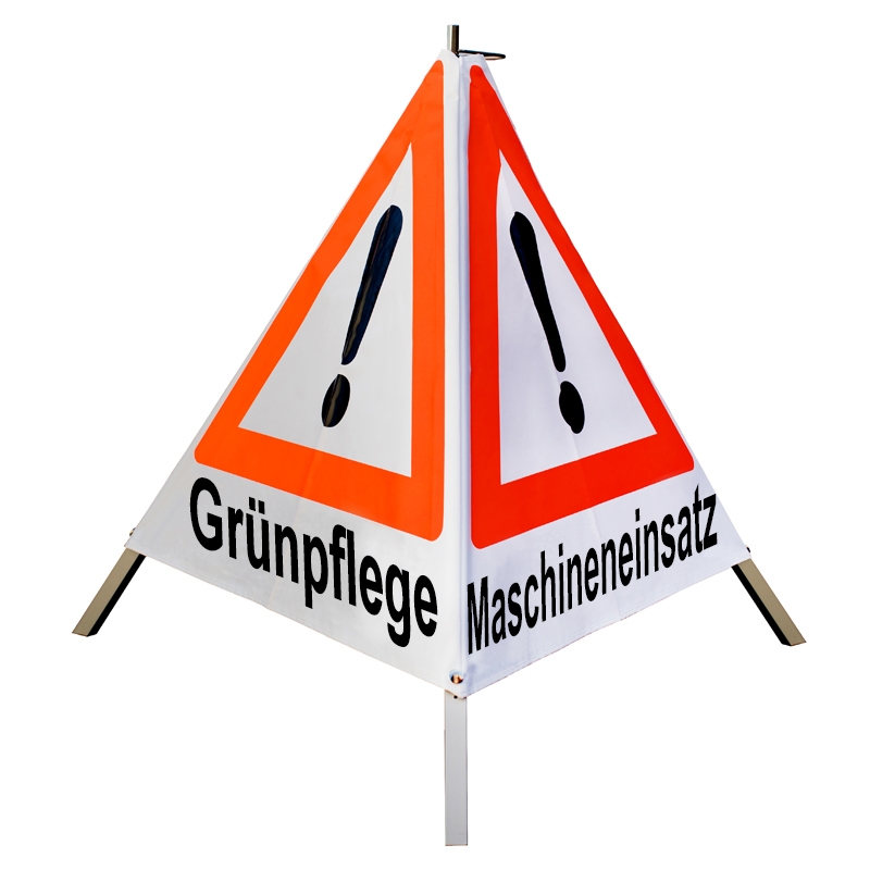 Warnpyramide/Faltsignal - Baumarbeiten / Grünpflege / Maschineneinsatz - VZ101-Ausrufezeichen