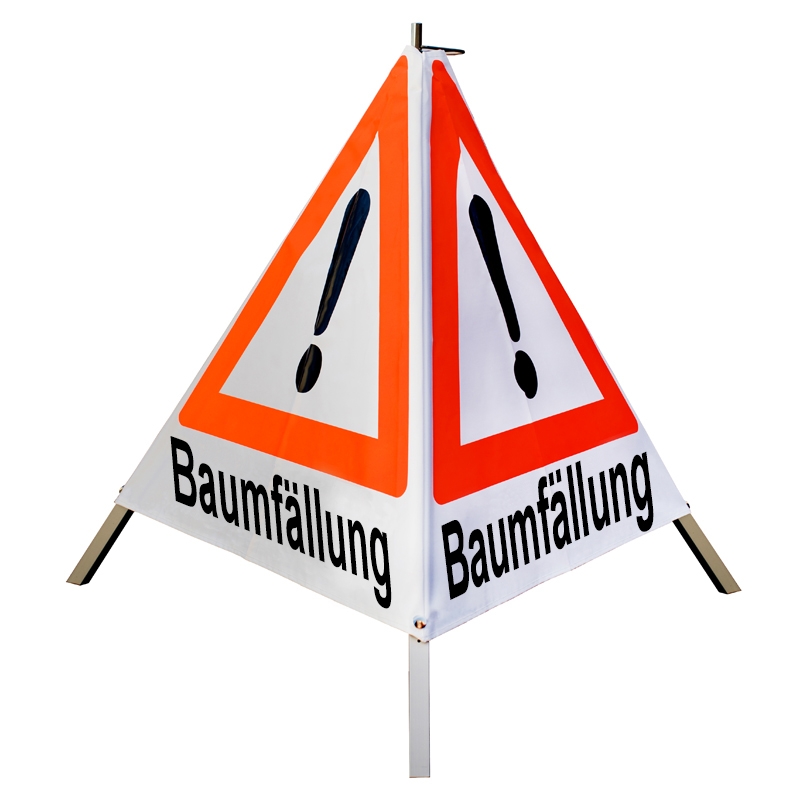 Warnpyramide/Faltsignal - Baumfällung - VZ101-Ausrufezeichen
