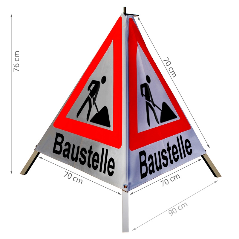 Faltsignal 70 cm retro-reflektierend für Baustellen bei Dunkelheit – Sichern Sie Ihre Baustelle mit dem Verkehrszeichen (VZ 123) ab.