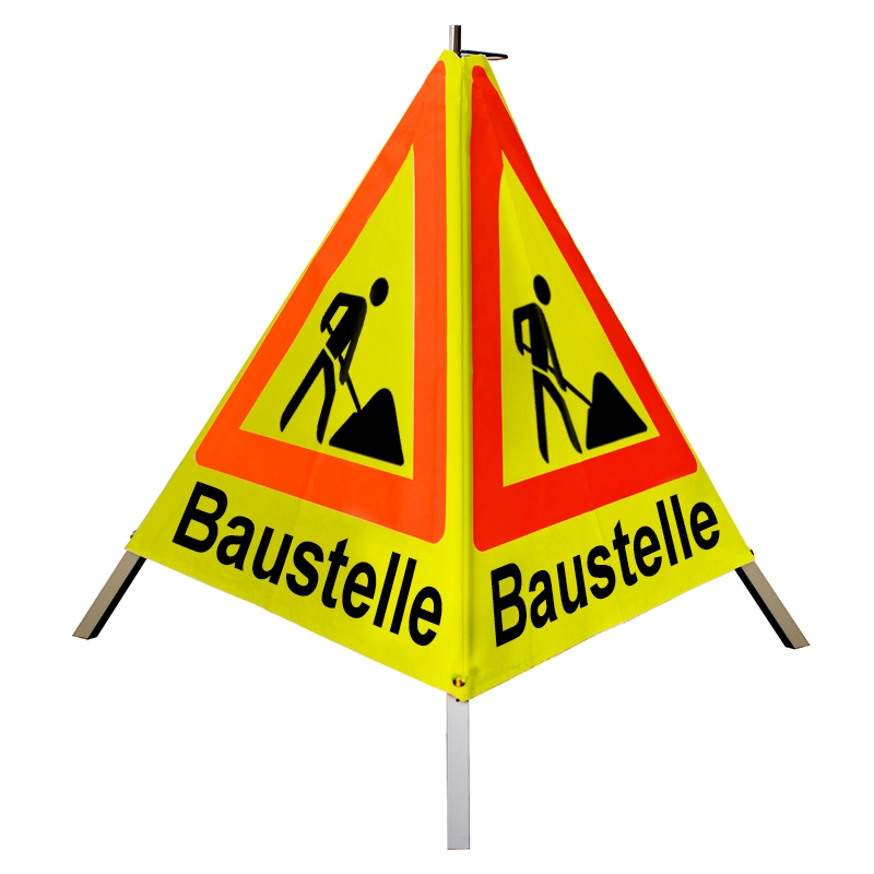 Das Faltsignal mit Schaufelmann-Symbol (VZ 123) und der Aufschrift "Baustelle" ist für den Einsatz bei allen Arten von Bauarbeiten im Bereich von öffentlichen Straßen, Wegen und Plätzen vorgesehen, die bei Tag stattfinden und Auswirkungen auf das Verkehrsgeschehen haben. Der Bezug ist gelb tagesleuchtend, um eine höhere Aufmerksamkeit als die weiße Folie zu erzeugen. Nach Straßenverkehrs-Ordnung (StVO) ist das ordnungsgemäße Absichern von Arbeitsstellen mit Verkehrsbehinderungen an öffentlichen Straßen vorgeschrieben.