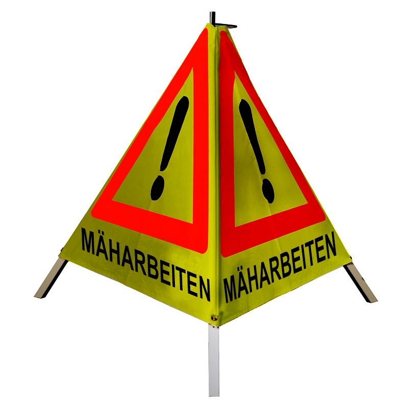"Warnpyramide/Faltsignal - MÄHARBEITEN - VZ101-Ausrufezeichen"