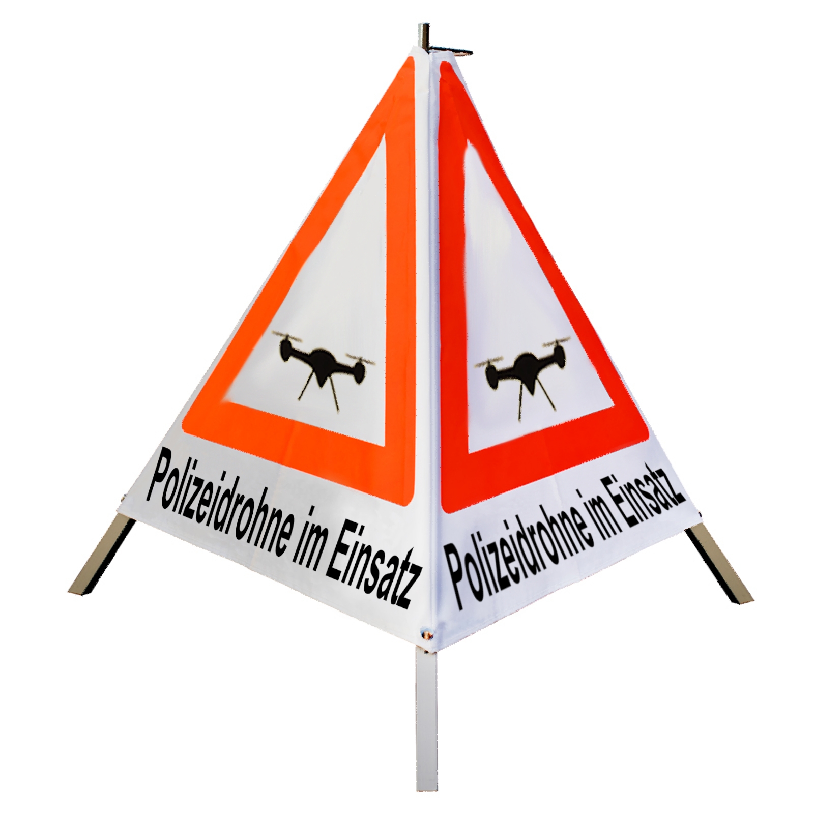 Warnpyramide/Faltsignal - Polizeidrohne im Einsatz (Sonderzeichen: Drohne)