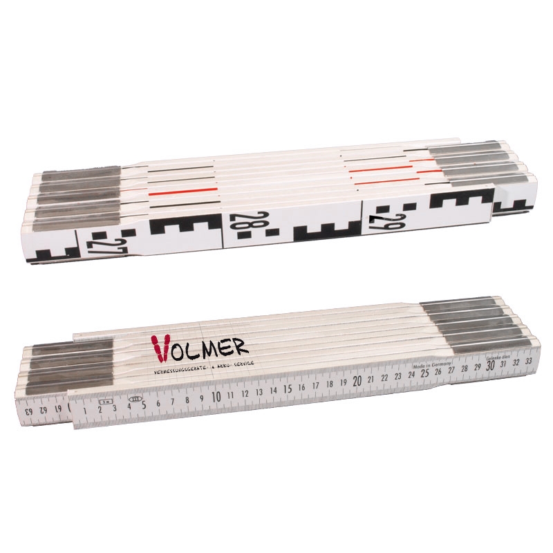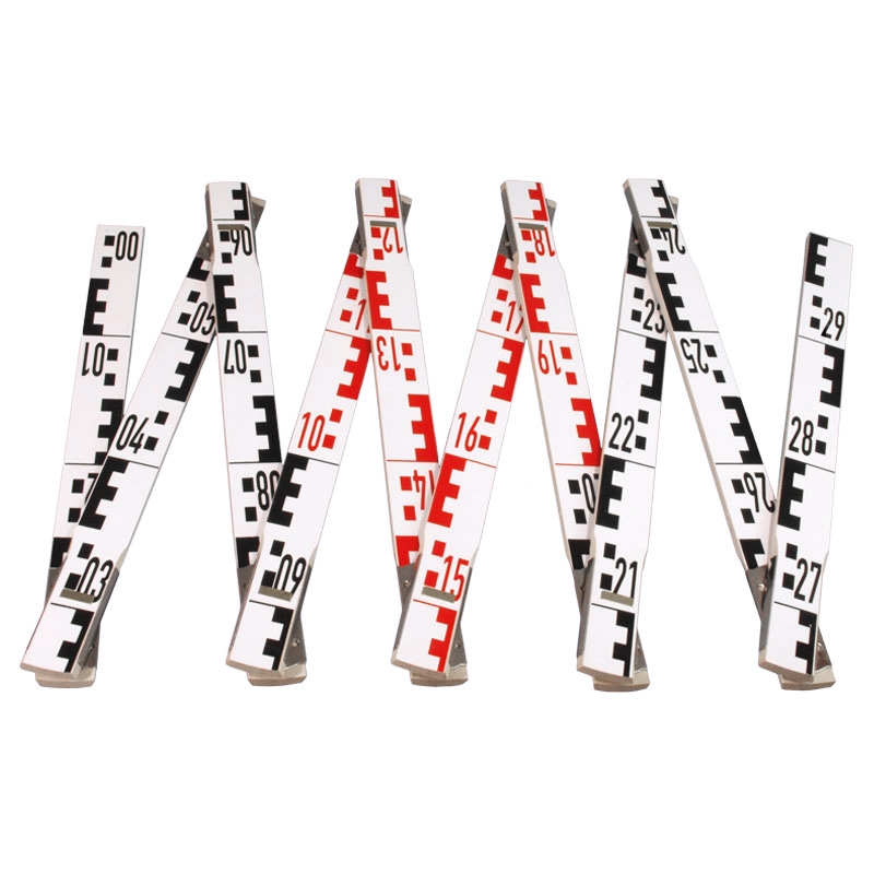 Der Geometer-Maßstab 3 m verbindet die Vorteile der Nivellierlatte und des klassischen Gliedermaßstabs. Somit können Sie sowohl nivellieren als auch millimetergenau messen. Auf der Vorderseite dieses Nivellierzollstocks ist die E-Teilung in den Farben rot und schwarz zu je 1 m für das Nivellieren vorgesehen; die Rückseite ist mit der metrischen Teilung in Millimertern und Zentimetern zum Messen von Längen bestimmt.